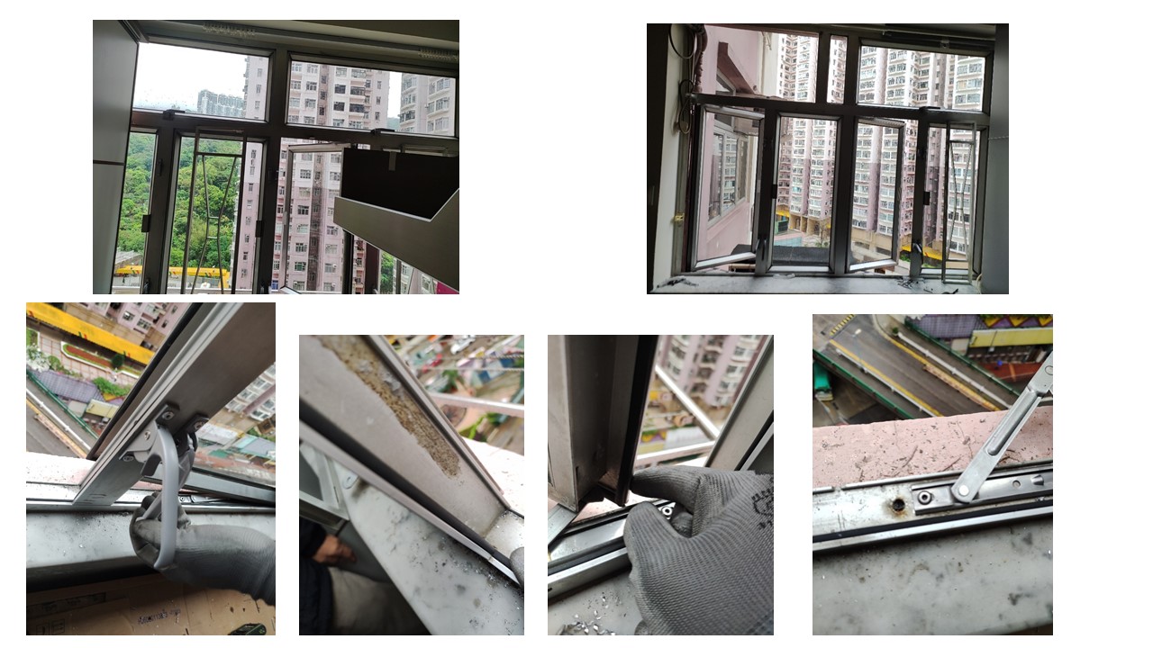 將軍澳更換:防水膠邊, 窗鉸+..