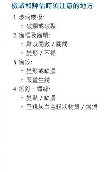 原因:窗鉸以至整個窗框,主要依靠拉釘或螺絲來做連接及固定在牆身上,當拉釘或螺絲出現鐵銹時,即表示螺絲的抓著力開始失去,有機會令整個鋁窗支解開來,會很危險呢⚠️