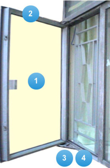 1) 窗鉸彎曲或鬆脫